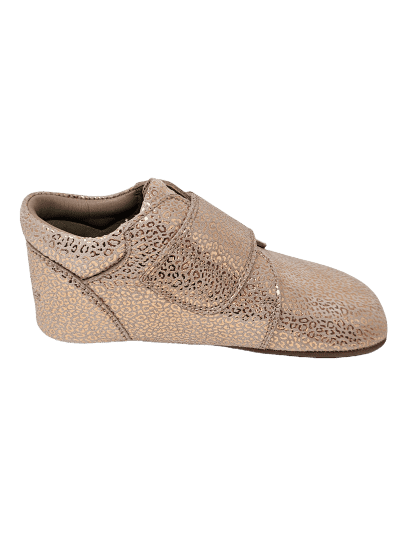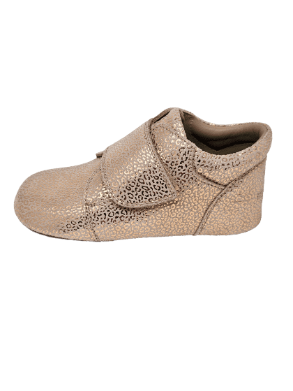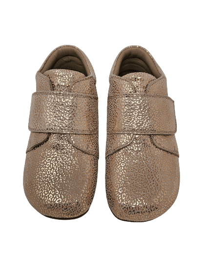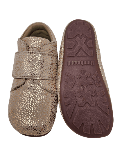 Außergewöhnlich chic und goldig kommt dieser flache Klettschuh von BUNDGAARD daher: ob zum leichten Kleidchen oder zur Jeans – als auch zur Latzhose mit heller Jacke oder Bluse getragen, verleiht er doch jedem Outfit ein bisschen Glamour im Alltag und wertet optisch dieses mit nicht zu übersehenden Golddruck noch mehr auf! Die neutrale Farbe des bedruckten Veloursleders ist ein wahrer Kombipartner. Willkommen im Alltag kleine Prinzessin!