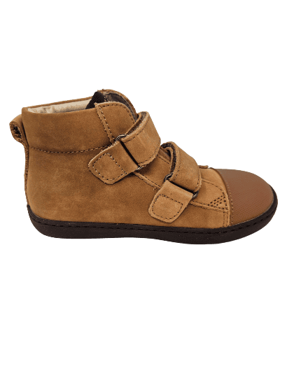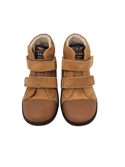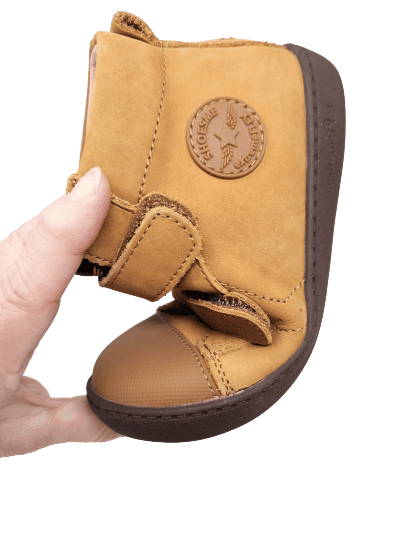 Ein weiches, camelfarbenes Nubukleder als Obermaterial schmiegt sich an sanft an schlankere Füße an und sorgt mit dem gut gepolsterten Schaftrand für einen optimalen Halt im Schuh. Schlanke Klettverschlüsse machen das An- und Ausziehen der Schuhe zum Kinderspiel und lassen sich auch von kleineren Kindern sehr gut händeln.